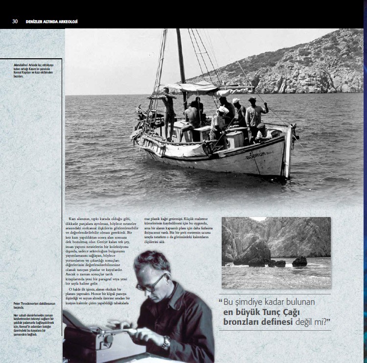 "2002 yılının 12 Haziran günü, karım Ann ve oğullarım Gordon ve Alan izlerken, Amerika Birleşik Devletleri'nin 43. Başkanı George W. Bush, Ulusal Bilim Madalyası'nı boynuma astı. Olağanüstü ödüllendirici bir kariyerin doruk noktasıydı. Bir başkasını hayal edemem. Yeni bir akademik disiplin olarak batık arkeolojisini yarattığım için bana ulusun en yüksek bilim onuru verilmişti. Seremoniye kadar uzanan uzun ve bilinmez yolculuğum 1960 yılı başında Philadelphia’da Genç Hıristiyan Erkekler Birliği'ndeki bir dalış kursuyla başlamıştı. Hak ettiğim bu dalış sertifikası, yıl sona ermeden antik bir gemi batığını kendi bütünselliği içinde deniz dibinde kazan ve bu kazıdan itibaren Tunç Çağı Ege'sinde Yakın Doğu denizcilerinin rolünü teşhis eden ilk kişi olduğum Türkiye’deki Gelidonya Burnu'na bir biletti.